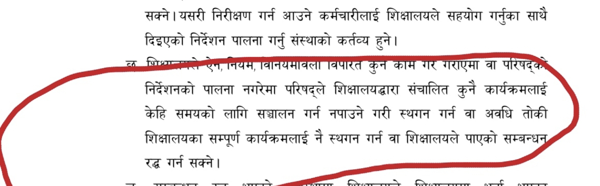 यस कारणबाट पनि शिक्षालयमा सञ्चालनमा रहेका विषयहरू समेत स्तगन हुन सक्ने लगायतका जोखिम बढेको देखिन्छ भने स्थगन र खारेजी समेत हुन सक्दछ। शिक्षालयमा सञ्चालन हुनुपर्ने नर्सिङ लगायतका विषयहरू समेत जोखिममा पर्ने देखिन्छ ।